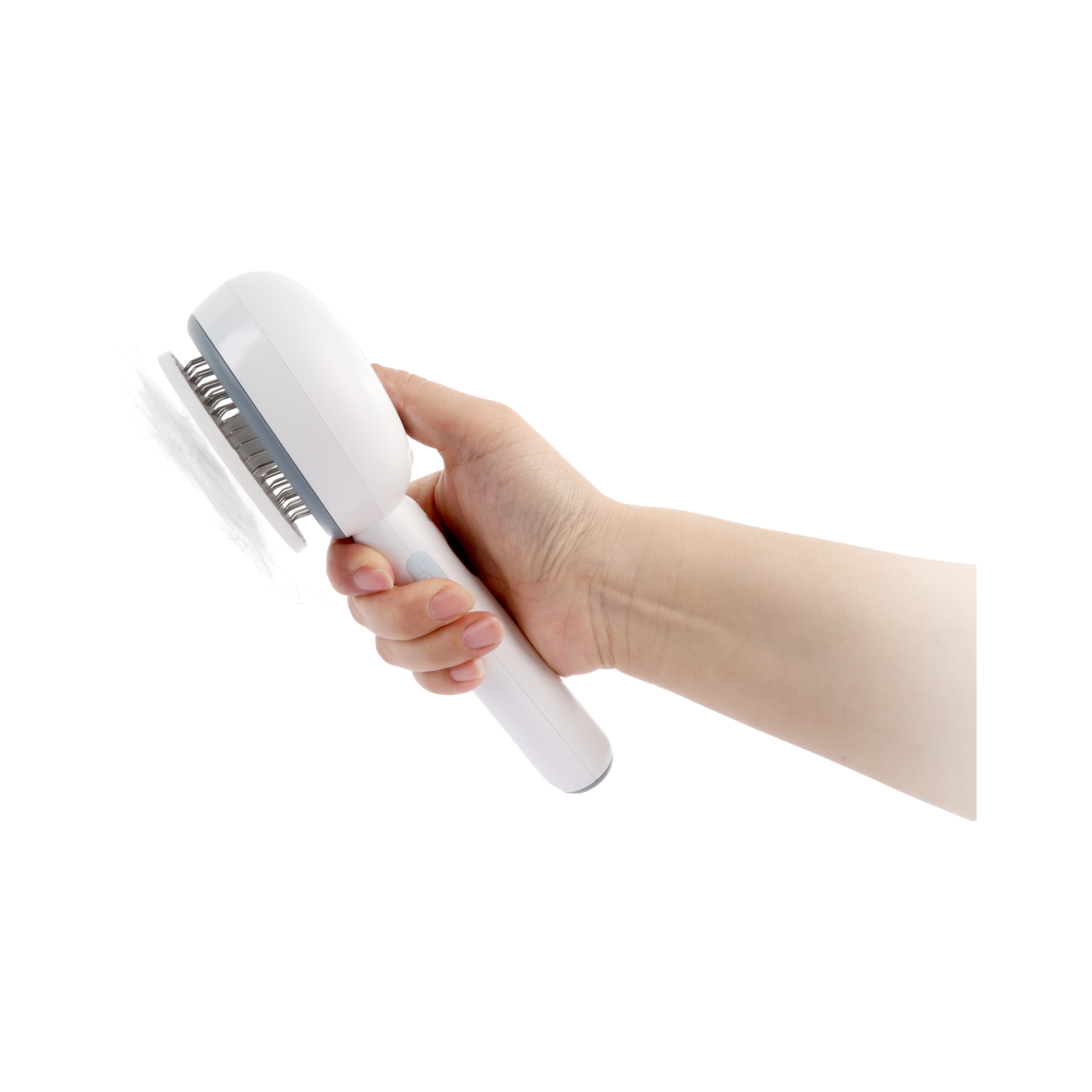 Peria cu Spray este o perie inovatoare pentru animale de companie, echipata cu functie de spray care reduce eficient electricitatea statica si parul care zboara in timpul perierii. Recipientul incorporat permite adaugarea de apa, deodorant sau balsam pentru par, iar butonul de eliberare face curatarea parului de pe perie rapida si usoara.