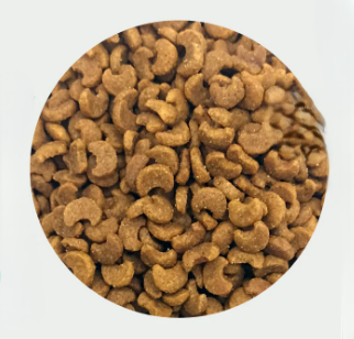 Proteina deshidratata de somon (38%), orez Baldo, porumb, ulei de somon (6%), grasime rafinata de pui, faina de ansoa, faina de krill, drojdie de bere uscata, ficat de pui hidrolizat, ulei de ansoa, proteina din drojdie nucleotidica, minerale, prebiotice MOS (mannan-oligozaharide), alge marine, extract de yucca, pudra de merisoare, psyllium.