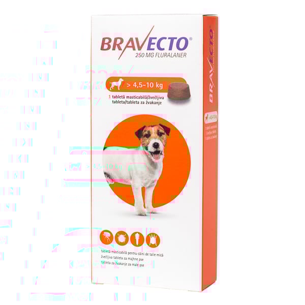 Bravecto 250 mg tablete masticabile pentru caini de talie mica (>4.5-10 kg)