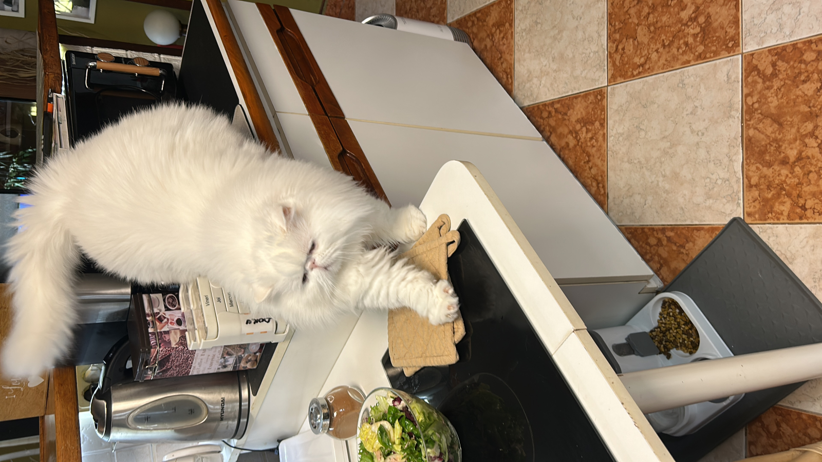 Pisica papa tot, se prezinta la ora fixa la mese, e foarte multumita