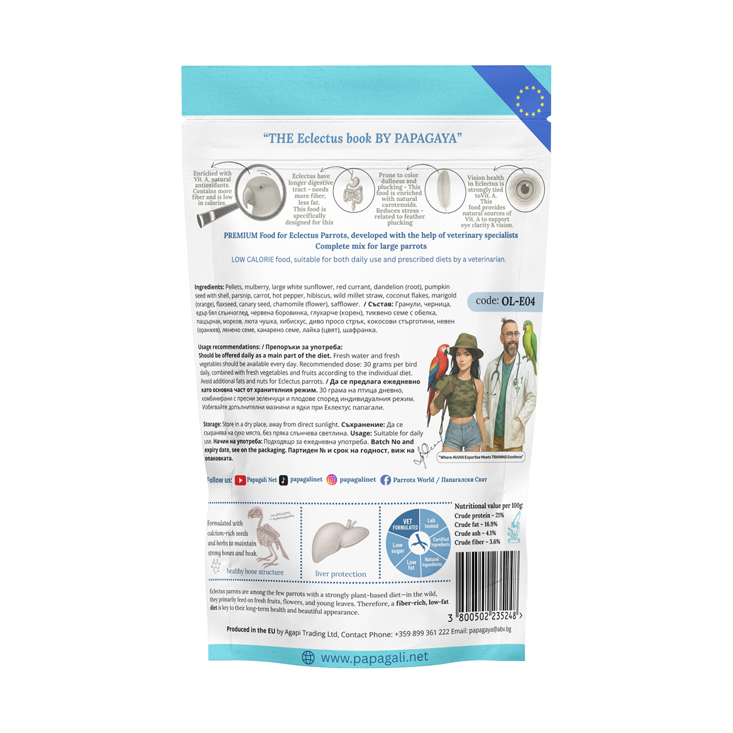 - Formula specifica speciei – creata special pentru nevoile Eclectus