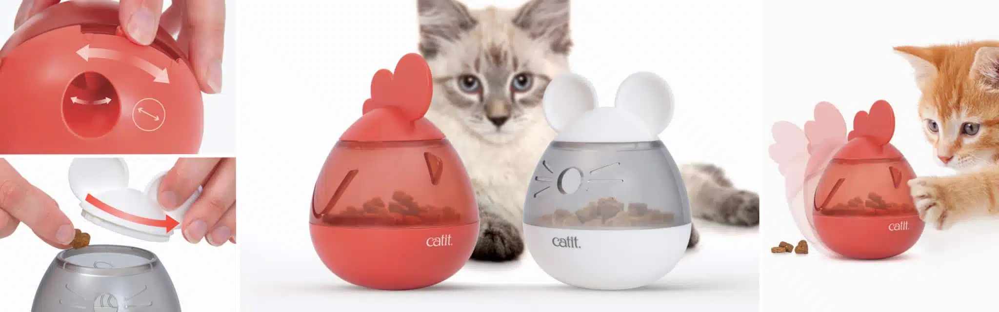 Catit Pixi Treat Dispenser este o jucarie adorabila si interactiva pentru pisici, creata pentru a le stimula instinctul de vanatoare si a le recompensa comportamentul jucaus. Disponibila in formele simpatice de soricel si cocos, jucaria are baza ponderata care o face sa se balanseze si sa revina mereu in pozitie verticala, chiar si dupa ce pisica loveste si scutura jucaria pentru a scoate recompensele.